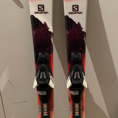 Salomon JR skidor 120 cm röd med bindningar och stavar