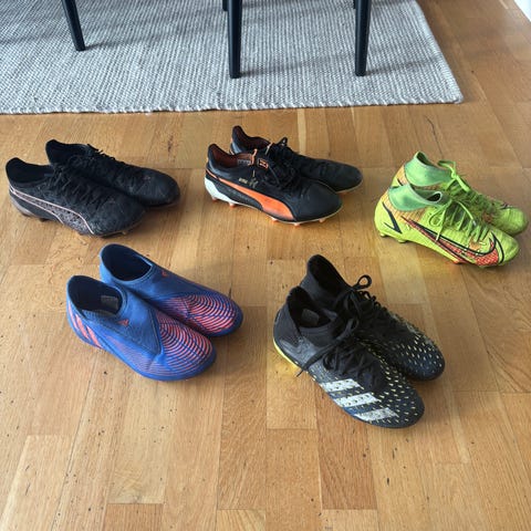 Puma sko, Nike benskydd och fotbollshandskar med fotbollsskor junior blå svart