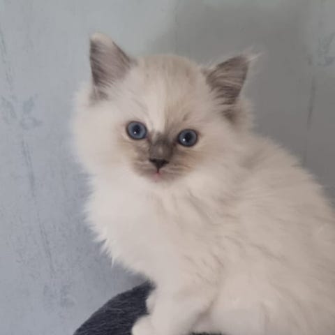 Ragdoll kattunge hona utan stamtavla, född 20 december, söker ett tryggt och kärleksfullt hem. Hon är leveransklar 14 mars.