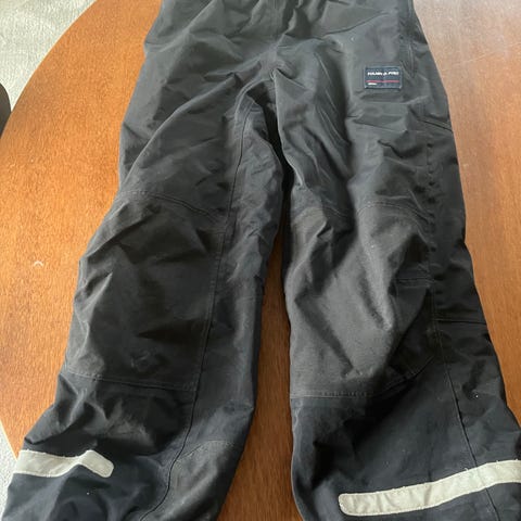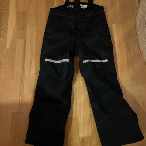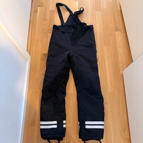 Didriksons byxor för barn i storlek 134. Byxorna är svarta och tillverkade i vattentät polyester. Modellen är unisex och har justerbara hängslen enligt bild. Passar som ytterbyxa för utomhuslek och vardagsbruk.