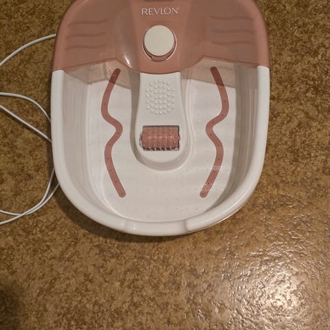 Utrustad med massagevalsar i botten, struktur för fotmassage samt vred på framsidan för att ställa in olika funktioner. Avsedd för fotbad och fotmassage i hemmet. Ansluts med sladd till vägguttag.