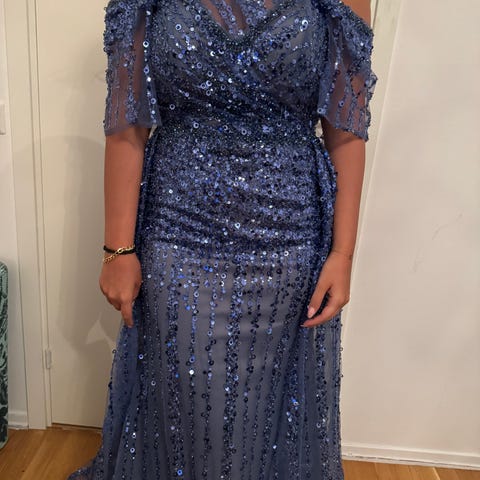 En fin blå och glittrig festklänning/balklänning. Med slits och jättefin detalj på överdelen. Priset kan diskuteras!