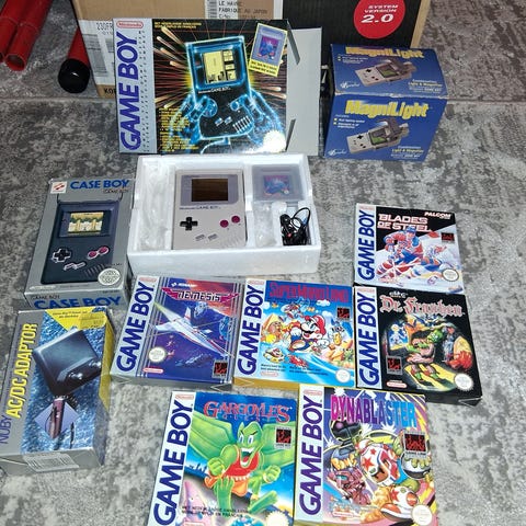Nintendo Game Boy konsol inkl. manual och linkkabel (defekt med glapp strömförsörjning och vertikala linjer på skärmen men startar), Priside 300kr
