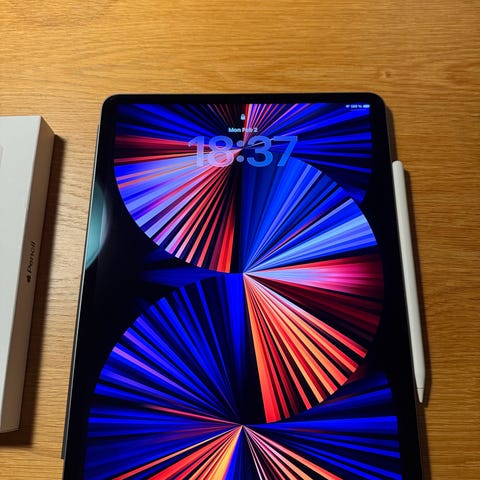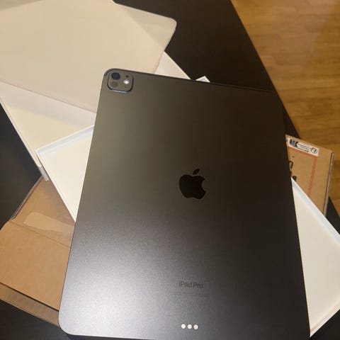 2025 iPad Pro 13tum” 5th generation med nya M4-processorn och 256 GB lagring, space grey.Legat i kartong!! Den är i helt ny skick! endast använd ett fåtal gånger annars legat i kartong. Den har haft skärmskydd fram och bak sen dag 1. Inga som helst repor. Den perfekta enheten för kreativt arbete, multitasking och underhållning.