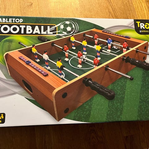 Ett fint smidigt bordspel. Fotboll. Aldrig ens ihopplockat då vi råkat haft dubbla. Kartong är lite kantstött då den stått undanställt med annat.