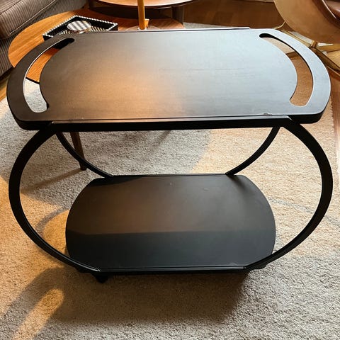 Handgjorda trämöbler. Bordet är fyrkantiga med runda hörn. Perfekt som avlastbord eller på en balkong. Stolar o pall är sittvänliga. Det går att få till 1 pall och 4 stolar för 200 kr till.