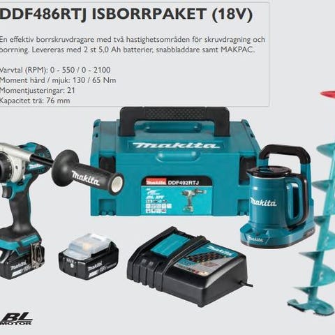 En av Makitas starkaste borrmaskiner som klarar både hålsågar och isborr. I stort sett ny, endast test körd och utan batteri.