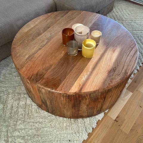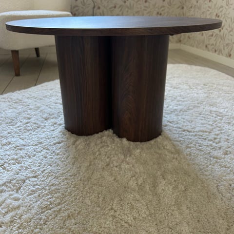 Det runda soffbordet ARADA är en fantastisk mittpunkt i vardagsrummet. Tillverkat av MDF och utsmyckat med rotfanér i en glansig finish, utstrålar det en naturlig charm och modern känsla