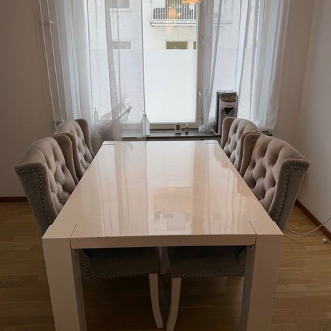 Robust bord med 2 iläggsskivor från IKEA (bjursta).