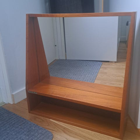 En CD -ställ som aldrig används och som man kan hänga på väggen. Eller ställas på något bord. Själv minns inte vart jag köpte den. Fin trä.