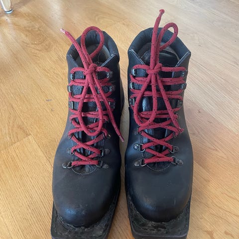 Känga bild 4-6: Lundhags original, stl EU5, svarta käderkängor, bra kraftig sula (skywalk, telemark). Passar tex till långfärdsskridskor eller turskidor. Skaftet är stabilt och ger stöd för vristen. Passar 75 mm nordic norm - bindning.