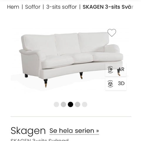Skagen och är en 3 sits svängd soffa fina svarta ben med hjul fram som ses på bilderna. Nypris 13.900 säljes nu för 4000