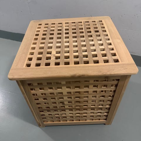 Jag byggde pallen för att ha något att sitta på när jag har spelat gitarr och som nattduksbord bredvid sängen. Möbeln är inte byggd efter alla regler inom finsnickeri, men den har sin charm. Priset kan diskuteras men denna pallen finns det bara en av i hela världen. Så passa på!