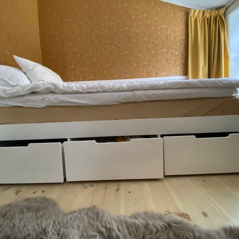 Vit säng med förvaring och ribbotten