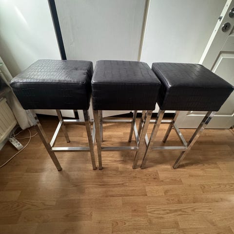 Läder eller konstläder i mörk färg med stålben, 250 kr/ st