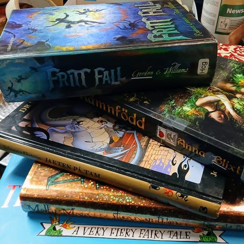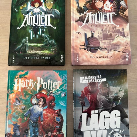 Paket med blandade barn- och ungdomsböcker i svenska utgåvor (två på engelska). Böckerna har olika författare och titlar och innehåller främst äventyr, fantasy och berättelser för barn och unga läsare. Passar för läsning i mellanstadiet och uppåt eller för den som vill ha en samling blandad ungdomslitteratur.