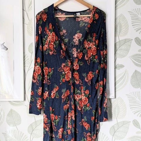 Morris. Vardagsklänning för dam i storlek M. Klänningen är flerfärgad med mönster och har långa ärmar. Materialet är viskos, vilket ger ett mjukt och följsamt fall. Passar som vardagsklänning.