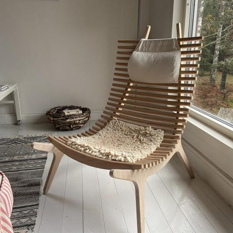 ”Den trebenta stolen Camilla är formgiven av John Kandell, mannen bakom Pilasterhyllan, för svenska Källemo”
