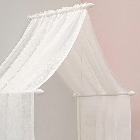 Monteras med liten krok i taket. Sänghimmelns struktur hålls på plats med en metallring som är avtagbar vid tvätt.