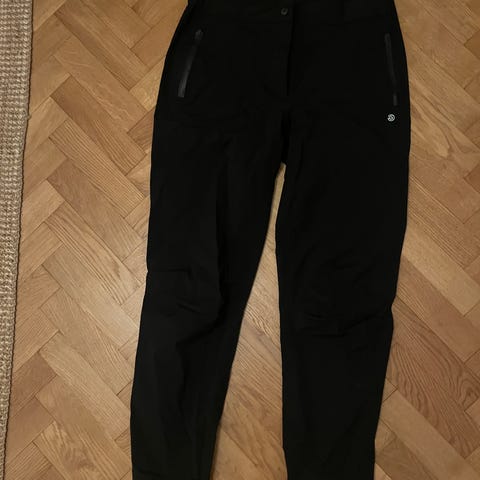 Förseglade sömmar på insidan, borstad trikå på insidan av midjan, laminerade hällor, handfickor med blixtlås, bakficka med blixtlås, dold resår baktill i midjan, justerbar med kardborrband nedtill och blixtlås i benslut.