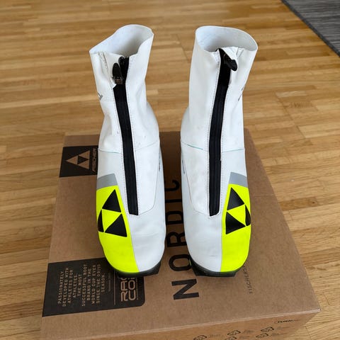 Fischer längdpjäxor i storlek EU37. Pjäxorna är svarta med gula och vita detaljer. De har dragkedja framtill och överdrag som skyddar snörningen. Sulan är anpassad för längdskidåkning och ger bra grepp mot bindningen. Passar för längdskidåkning i preparerade spår.
