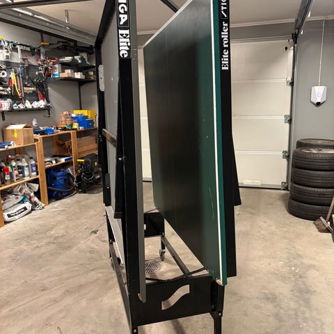 Stiga bordtennisbord, fullstorlek. Man kan fälla ihop bordet så det knappt tar någon plats vid förvaring. Vi skickar även med 1 äldre bordtennis rack samt 2 nya som knappt är använda inkl. nät och 3-pack nya pingisbollar.