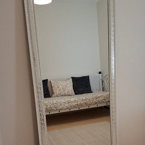 Mio Eliot spegel i vit dekor. Rektangulär spegel med vit ram, avsedd för väggmontering. Passar exempelvis i hall, sovrum eller vardagsrum för helkroppsspegling och rumsförstoring. Märkt på baksidan med modellbeteckning och ursprungsland Danmark.