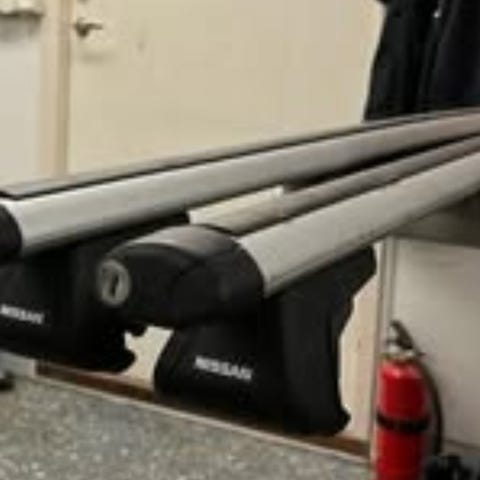 Jag säljer takräcke till Nissan ariya i aluminium med svarta plastfötter och silverfärgade laster. Består av två tvärbalkar med fästen som monteras på bilens tak.Svarta plastdetaljer och avslut gör att räcket kan anpassas och låsas enligt medföljande delar.