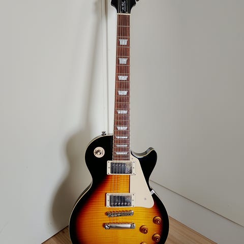 Epiphone Les Paul Custom elgitarr i svart utförande. Klassisk single cutaway-kropp med två humbucker-mikrofoner och 3-lägesswitch. Gitarren har greppbräda med blockinlägg och bindning runt kropp och hals. Utrustad med stämskruvar och hårdvara i guldutförande. Passar för elgitarrspel i olika musikstilar, exempelvis rock, pop och blues.