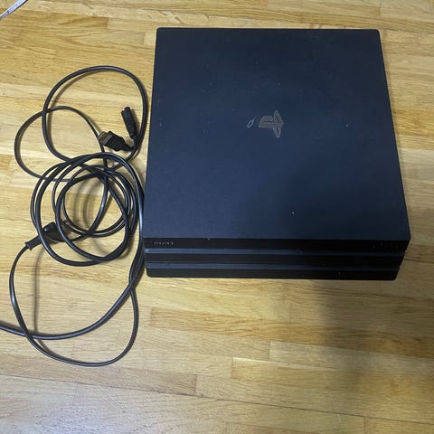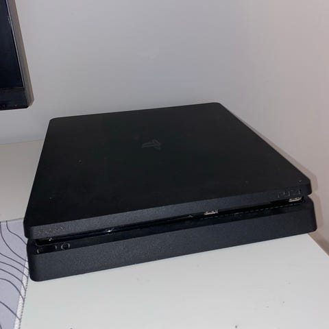 Sony Playstation 4 spelkonsol i svart utförande. Konsolen har anslutningar för HDMI, nätverk, ström och USB-portar på baksidan enligt bilderna. Lämplig för spel, film och streaming med kompatibla tillbehör och spel för Playstation 4-systemet. Exakta lagringskapacitet och medföljande tillbehör framgår inte av uppgifterna och bör kontrolleras separat.
