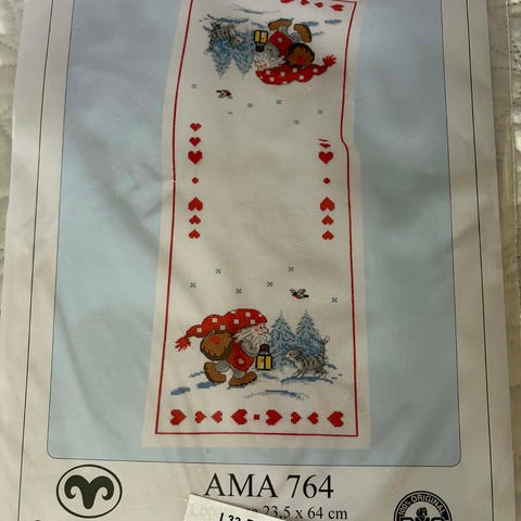 Väv med tryck. Tomte med tomtesäck på ryggen - bara att brodera!