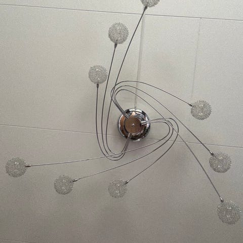 Taklampa glasklot med många små cirklar/kristaller som reflekterar ljus. Ca 40 ca i diameter