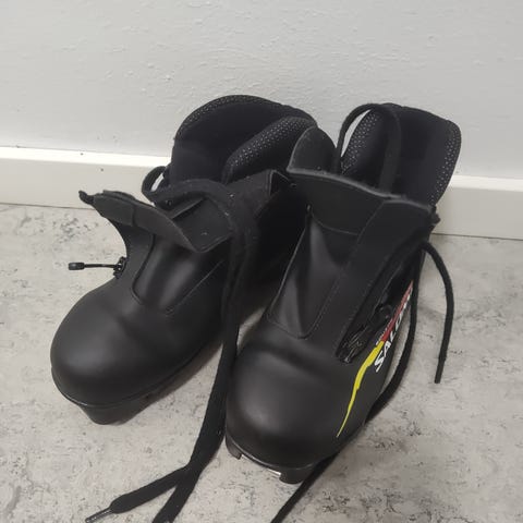 Alpina längdpjäxor i svart färg för barn. Pjäxorna har snörning med skyddande dragkedja framtill och sula för längdbindningar. Passar för längdskidåkning på preparerade spår. Endast använda ett fåtal ggr i en säsong så mkt bra skick! Rottefella T4-sula med NNN-systemet.