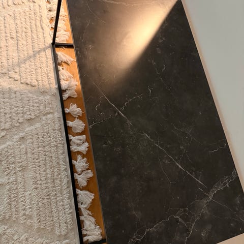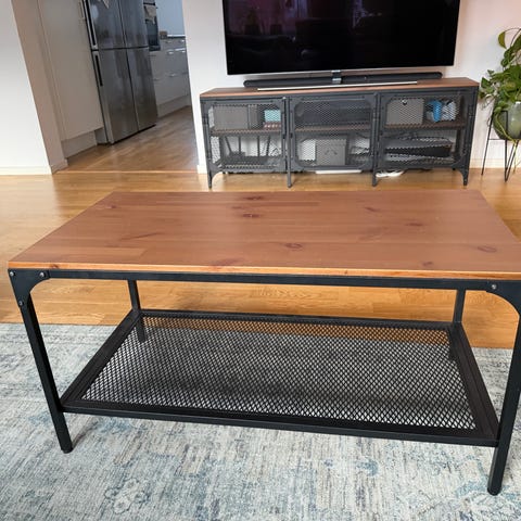 Ett soffbord från Jysk, det har fått en liten skada i decorplasten men det är bara att limma tid igen