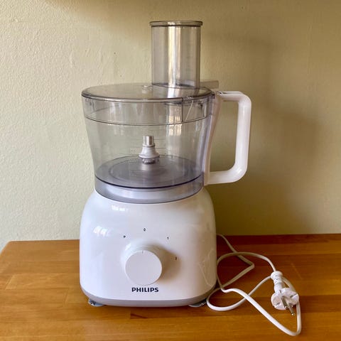 600 watt motor. 2,4 L behållare. 3 tillbehör. Pulsfunktion och 2 hastigheter. Silverfärgad.