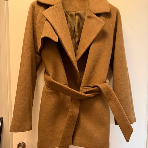 Säljer en stilren och tidlös kappa i beige/kamelton från H&M. Klassisk modell med bred krage och knytbälte i midjan som ger en snygg och feminin silhuett. Perfekt för höst och mild vinter.