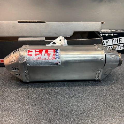 Dominator avgassystem för motorcykel. Systemet består av ljuddämpare och rördel, utformat för montering på motorcykel. Ljuddämparen har Dominator-logotyp och är anpassad för eftermarknadsbruk som ersättning för originalavgassystem på kompatibla modeller. Nytt i kartong.