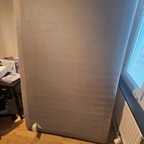 Har tyvärr inga mer uppgifter på modell av resårmadrass, men bekväm och ca 10 år gammal. Gott skick för sin ålder, mestadels använd som extrasäng.
