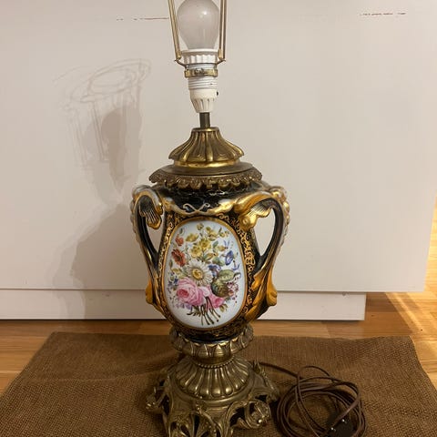 Lampfoten är i porslin och står på en mörk träbas. Klassisk form som passar både i modern och mer traditionell inredning. Ett riktigt samlarobjekt för dig som uppskattar svenskt/tyskt porslin och design från 70-talet.