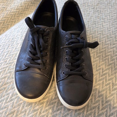 Bekväma svarta skor. Skorna har snörning och en dragkedja på sidan.