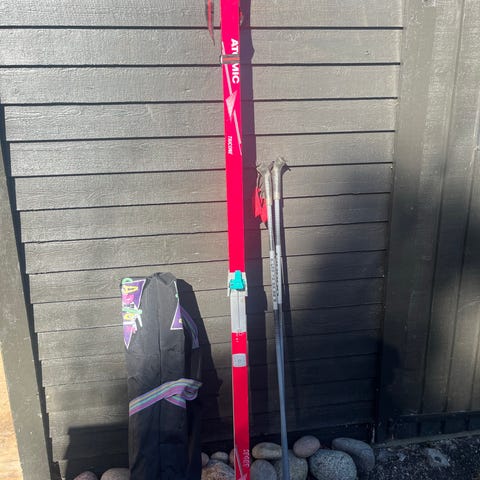 Atomic längdskidor i blått utförande. Skidorna är utrustade med bindningar som syns på bilderna. Passar för klassisk längdskidåkning. 207cm vallningsfria. Perfekt nybörjarskida. Stavar på köpet!