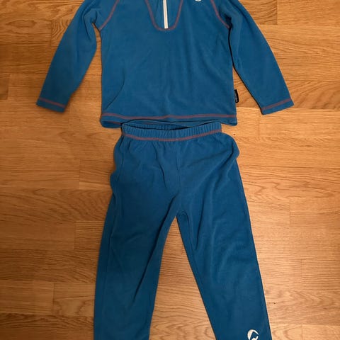 Devold Duo Active underställ för barn, unisex, i storlek 152. Setet består av långärmad tröja och långkalsonger i blå färg. Tillverkat i blandning merinoull och polyester som ger värme och komfort vid användning som första lager vid utomhusaktiviteter och vardagsbruk. Finns två slitage som syns på bild men inget som påverkar funktionen skulle jag säga. Ett väldigt tjockt och rejält underställ.