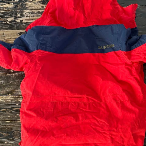 Burton jacka i storlek small. Jackan är röd med fast huva och dragskojustering. Insidan är fodrad med slätt tyg. Modellen har flera ytterfickor framtill och justerbar nederkant. Passar för utomhusaktiviteter och vardagsbruk.