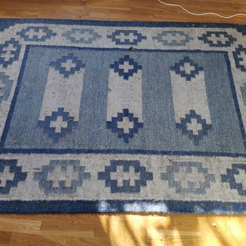 Grön/rosa röllakan matta i bra skick, men med någon liten fläck