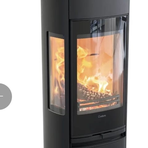 Bild 4-6: Grå Contura 580 braskamin från 2009 i ok använt skick.