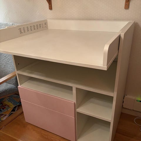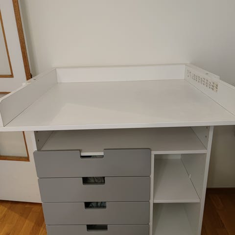 Småstad skötbord som går att göra om ett skrivbord. Helt ny oanvänd. Endast monterad.