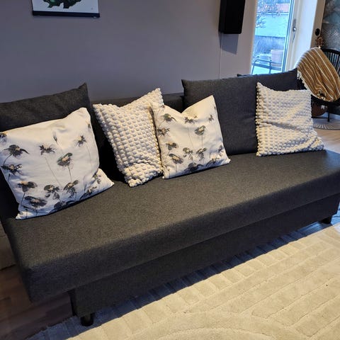 Säljer en bäddsoffa från Jysk (Mariager) den är sällan använd och är i nyskick. Sälja på grund av jag vill byta till en fåtölj istället.