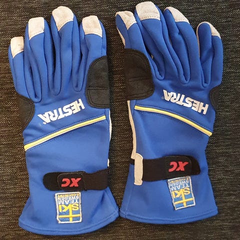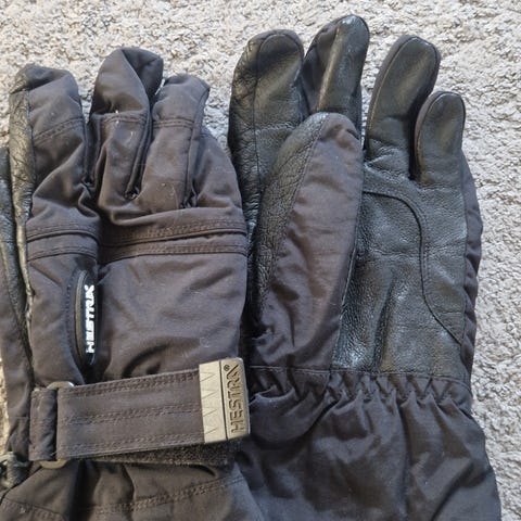 Säljer en par riktigt goa Hestra handskar i storlek 9. Skydd på knogar och fingrar. Oslagbart att ha enligt mig. Fint skick och riktigt varma. Inte sammetsmjuka på insidan men oavsett en mycket bra handske med mycket kvar i dem. Nyvaxade och därmed mörkare partier på sina ställen.