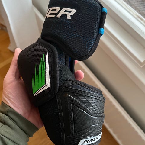 Bauer Supreme benskydd och armbågsskydd för ishockey i juniorstorlek L.