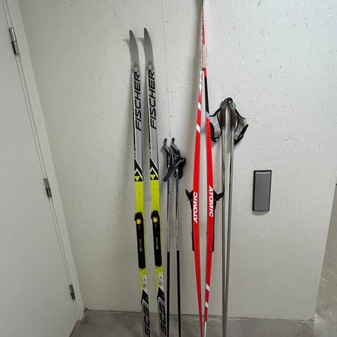 Längdskidor, barn och vuxen